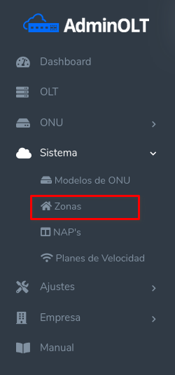 1Primero debemos ir al menú lateral y seleccionar en la sección "Sistema" la opción Zonas.