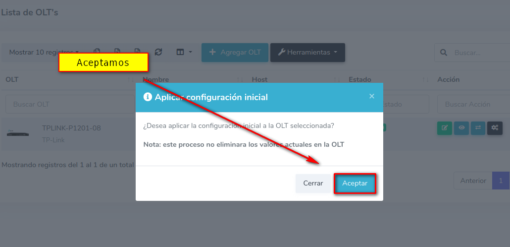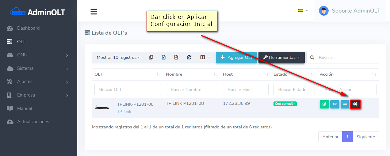 Después de aplicar las configuraciones iniciales, puede demorar entre 10-20 minutos en verse reflejados en su OLT.