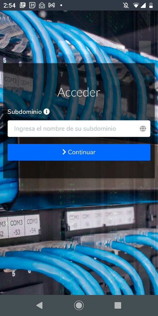 5Ahora si volvemos a ingresar a la app móvil, nos permitirá colocar el dominio de la nueva cuenta.
