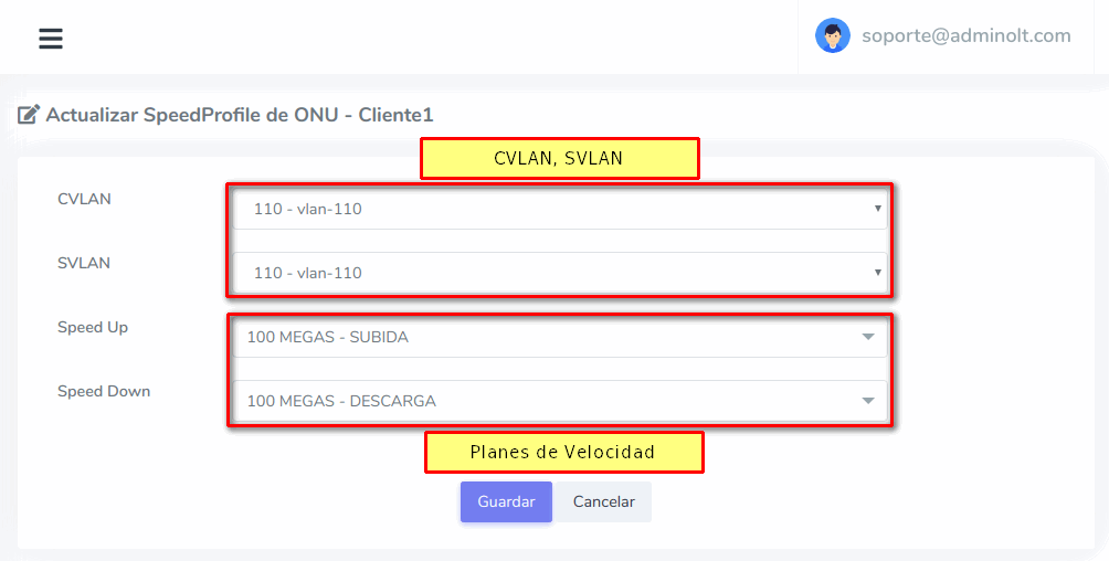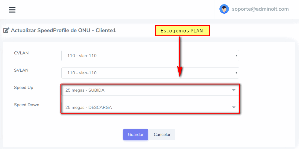 ¿Como puedo cambiar el Plan de Velocidad a una ONU Autorizada?