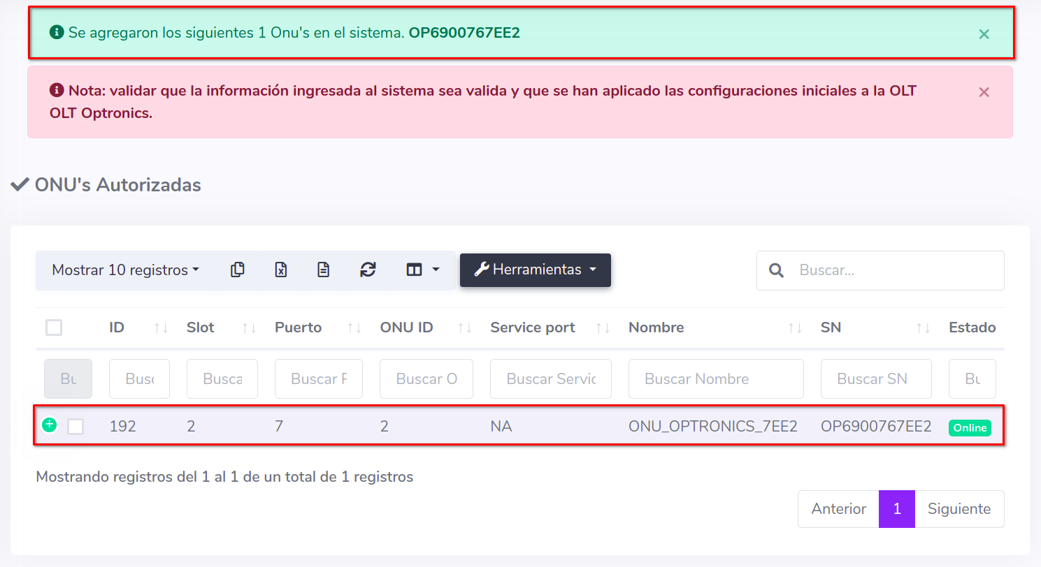 3Una vez que hayamos seleccionado los equipos, importamos las ONU's al sistema AdminOLT
