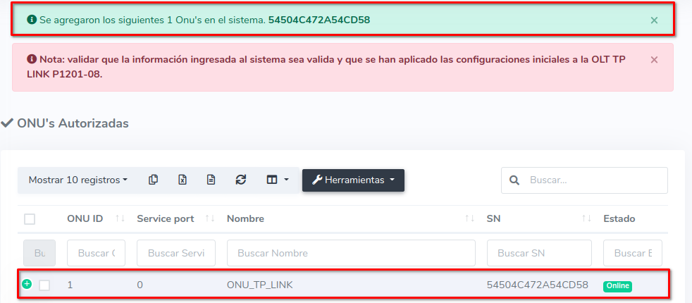 3Una vez que hayamos seleccionado los equipos, importamos las ONU's al sistema AdminOLT