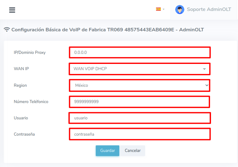 - Contraseña: Contraseña a utilizar para el Servicio de VOIP