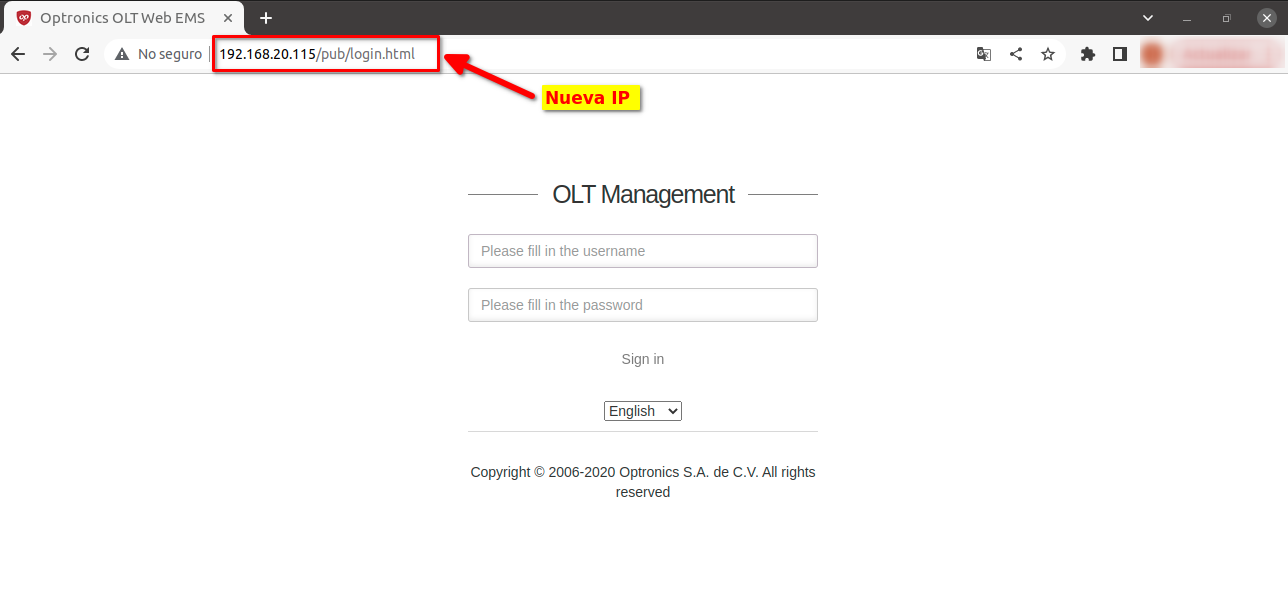 6 Configuramos la nueva IP de la OLT