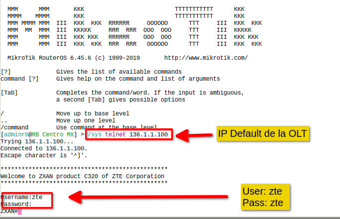 4 Nos conectamos por Telnet con la IP Default