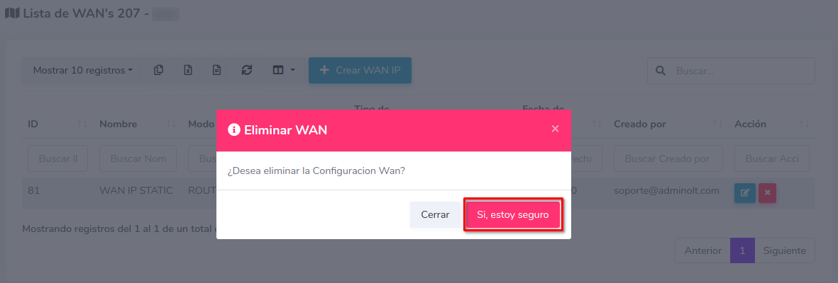 - ¿Como eliminar una configuración WAN IP?