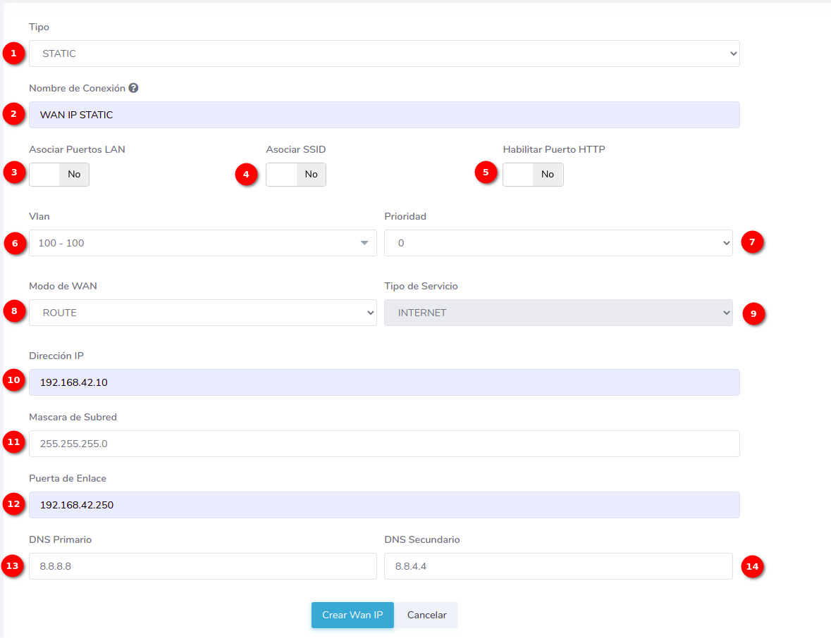 - ¿Como crear una configuración WAN IP de tipo STATIC?
