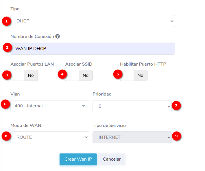 - ¿Cómo crear una configuración WAN IP de tipo DHCP?
