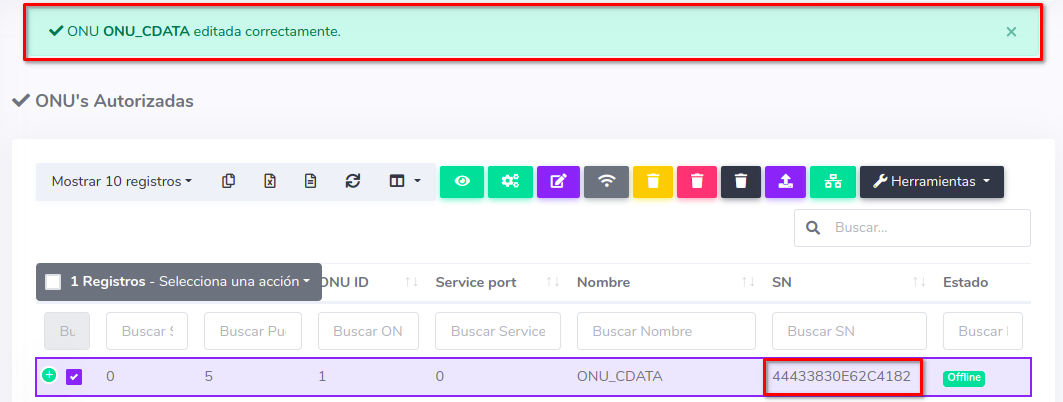 En AdminOLT podemos editar información de una ONU Autorizada en la OLT, supongamos que alguna de las ONUs que tenemos autorizadas en el sistema se estropea. Tomaremos como ejemplo esta situación para explicar el propósito de esta función. Así que en ese caso en AdminOLT al editar ONU por SN podemos tomar información de alguna ONU no Autorizada y usarla, sin perder la configuración inicial que teníamos.