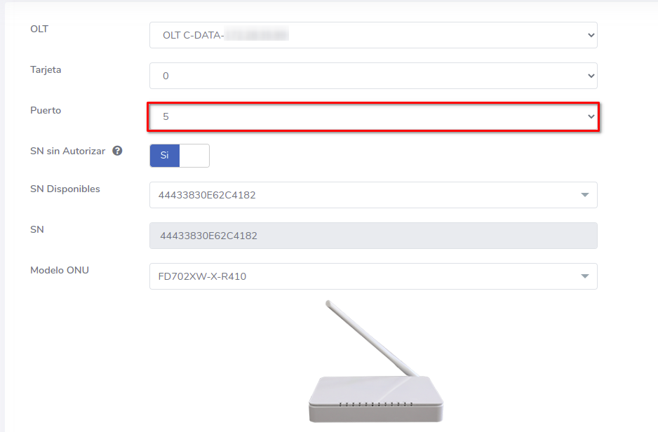 Esta función puede cambiar automáticamente datos como por ejemplo el Modelo de ONU, puerto y Tarjeta.