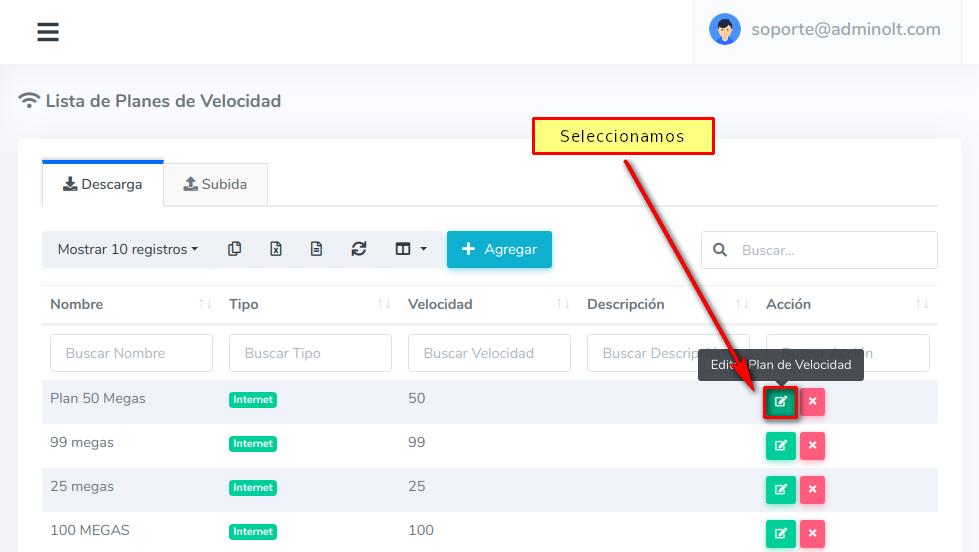 Al modificar un Plan de Velocidad, por ejemplo, de 50 megas a 51 Megas los clientes actuales relacionados al plan se verán afectadas, por lo tanto su nueva velocidad seria de 51 megas.