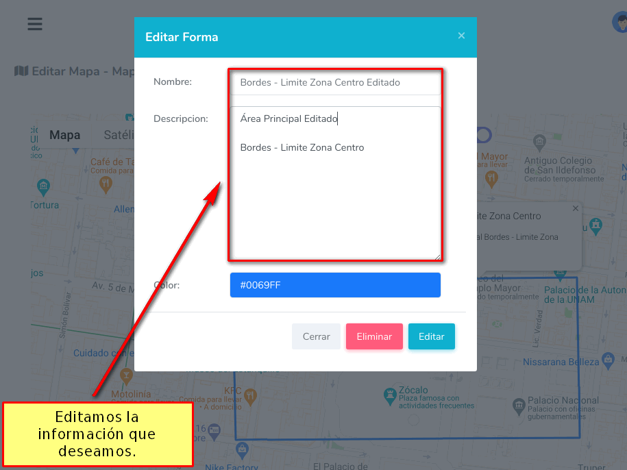 Damos click en la opción Manipular Mapa para terminar de dibujar la forma.