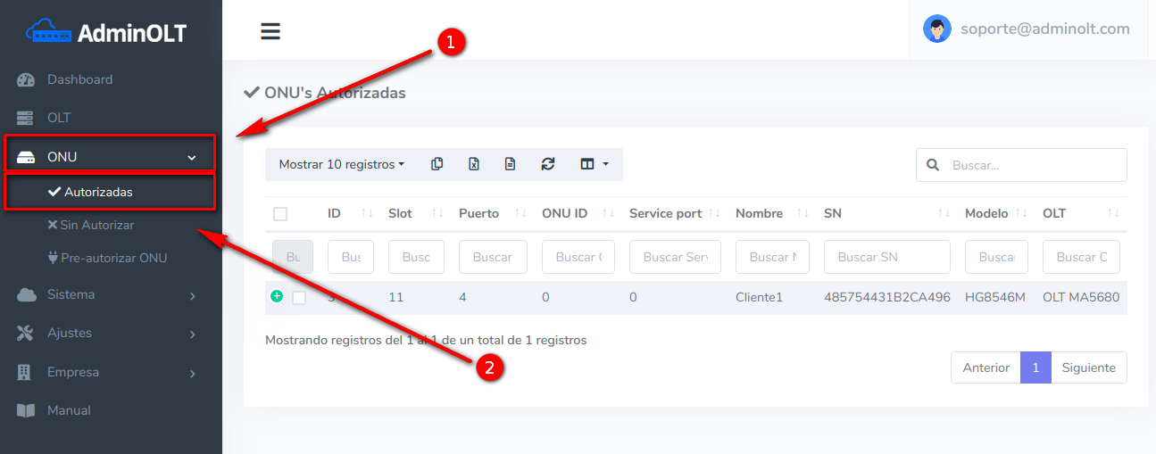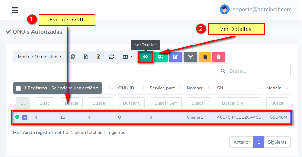 De igual manera puede ver la configuración de la ONU en la OLT, para esto debe seguir los pasos de apartado ¿Como puedo ver la configuración de la ONU que tiene en la OLT?